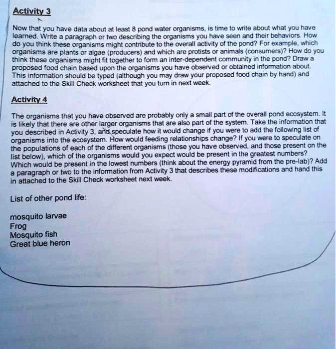 Solved Activitx 2 Now That You Have Data About At Least Pond Water Organisms I5 Time O Write About Wnat You Have Leamed Write Paragraph Or T1d Describing The Organisms You Have Seen